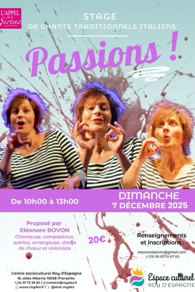 Stage à Marseille proposé par Eléonore BOVON, spécialiste de ce répertoire pour l'avoir longuement étudié et pratiqué sous la direction de Giovanna MARINI, et au sein du quatuor vocal Sanacore.