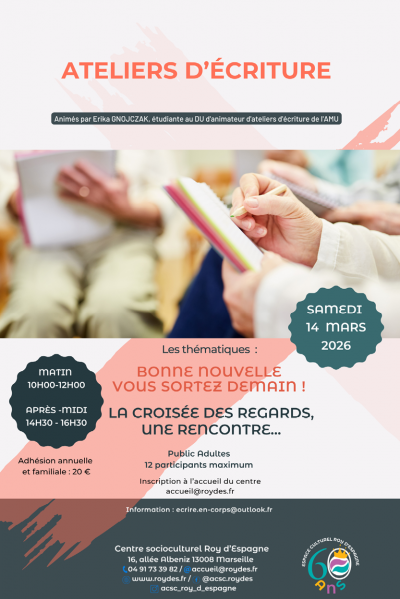 Animés par Erika GNOJCZAK, étudiante au DU d'animateur d'ateliers d'écriture de l'AMU