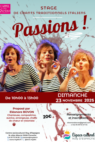 Stage à Marseille proposé par Eléonore BOVON, spécialiste de ce répertoire pour l'avoir longuement étudié et pratiqué sous la direction de Giovanna MARINI, et au sein du quatuor vocal Sanacore.