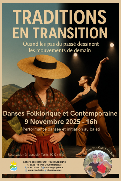 Billetterie Helloasso : https://www.helloasso.com/associations/centre-socioculturel-roy-d-espagne/evenements/billetterie-traditions-en-transition